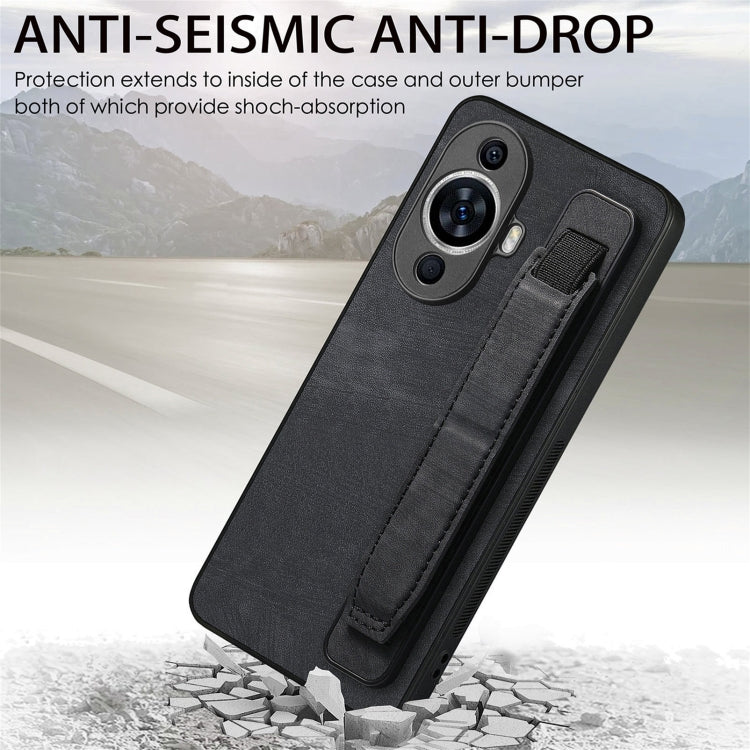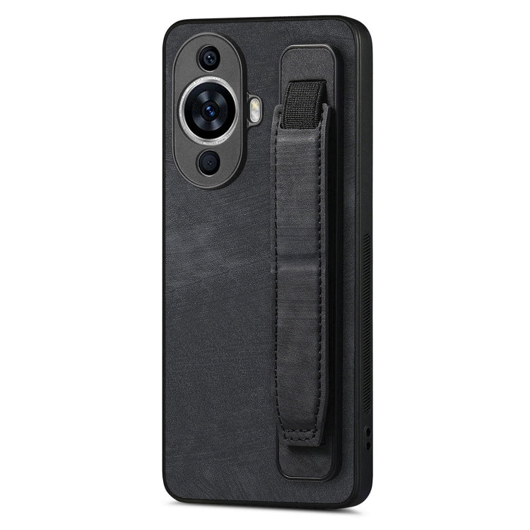 Funda Trasera de Cuero para Huawei Nova 11 con Soporte para Pulsera (Negro)