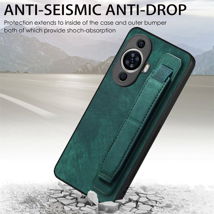 Funda Trasera de Cuero para Huawei Nova 11 con Soporte para Pulsera Retro (Verde)