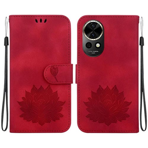 Funda de Cuero para Huawei Nova 12 con Relieve de Loto (Rojo)