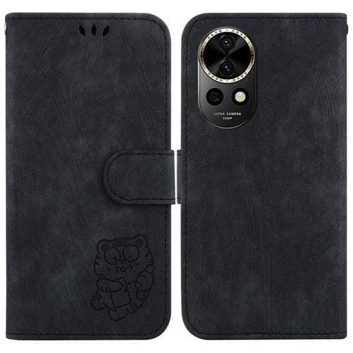 Funda de Cuero para Huawei Nova 12 con Relieve Little Tiger (Negro)