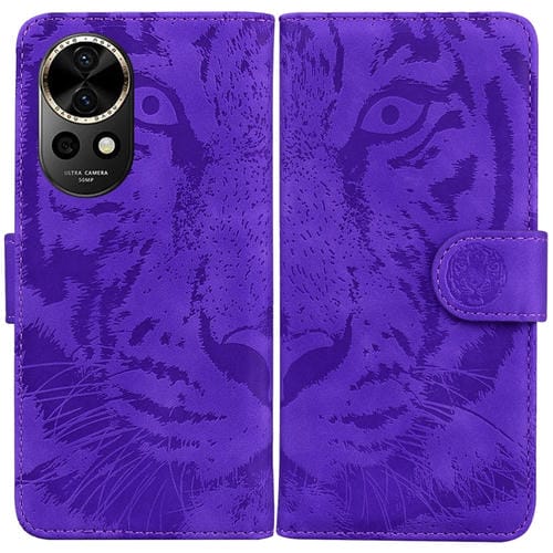 - 1x Funda de Cuero con Tapa para Huawei Nova 12 con Patrón en Relieve de Tigre (Púrpura)