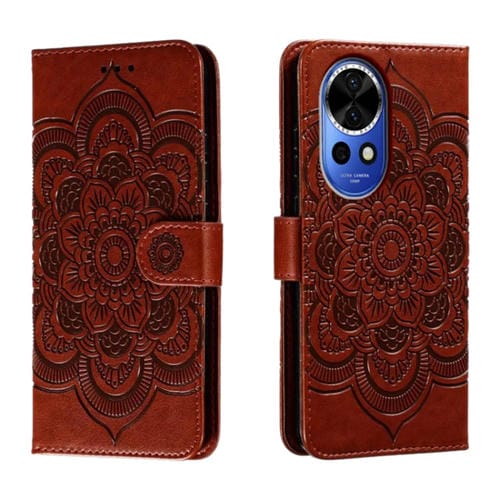 Funda de Cuero Huawei Nova 12 con Patrón en Relieve Sun Mandala (Marrón)
