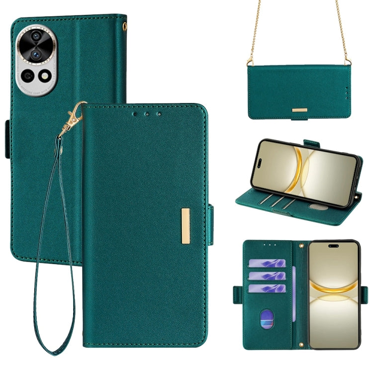 Funda de Cuero con Cadena Cruzada para Huawei Nova 12 Pro / 12 Ultra (Verde)