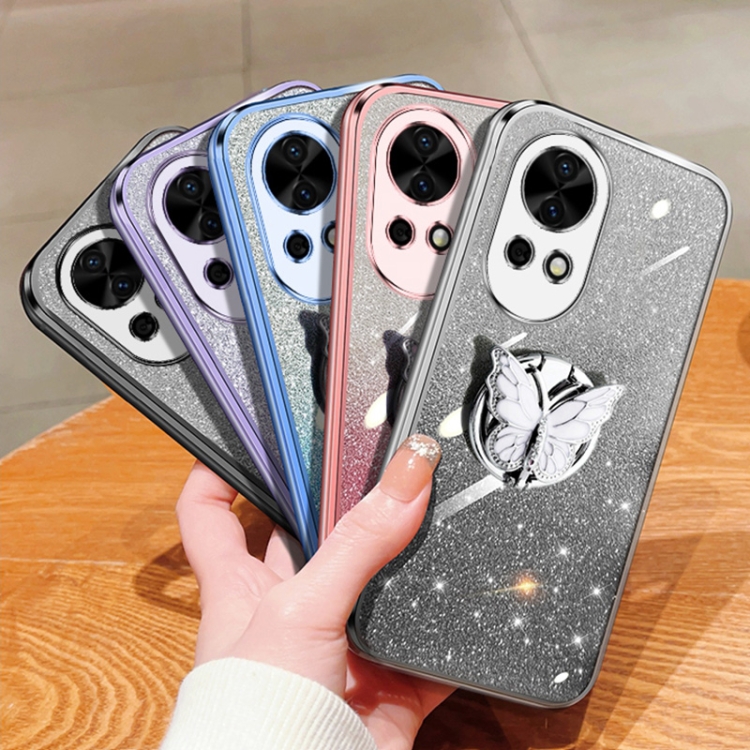 - 1x Funda TPU para Huawei Nova 12 Pro con Soporte de mariposa y brillo degradado (Rosa)