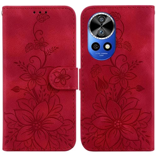Funda de Cuero en Relieve para Huawei Nova 12 Pro Lily para Teléfono (Rojo)