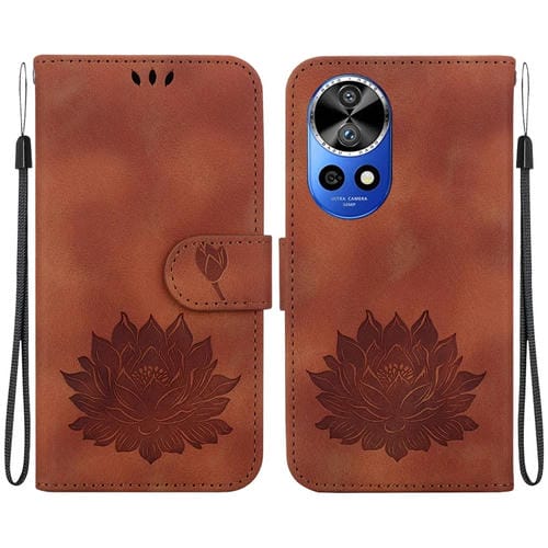 Funda de Cuero Huawei Nova 12 Pro y Nova 12 Ultra con Relieve de Loto (Marrón)