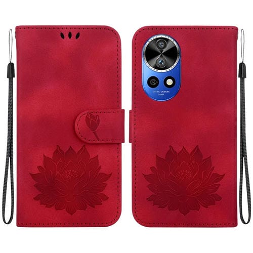 - 1x Funda de Cuero Huawei Nova 12 Pro y Nova 12 Ultra con Relieve de Loto (Rojo)