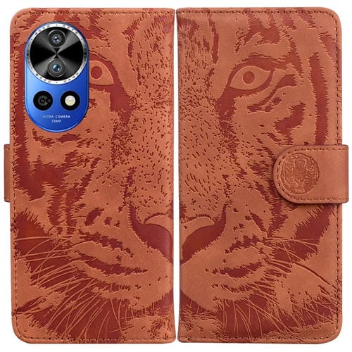 - 1x Funda de Cuero para Huawei Nova 12 Pro y Nova 12 Ultra con Tapa y Patrón en Relieve (Marrón)