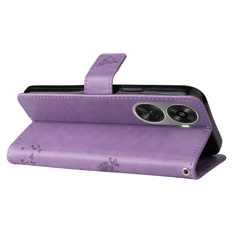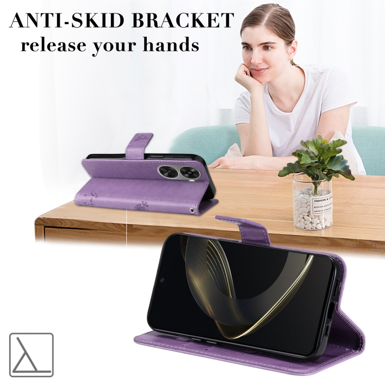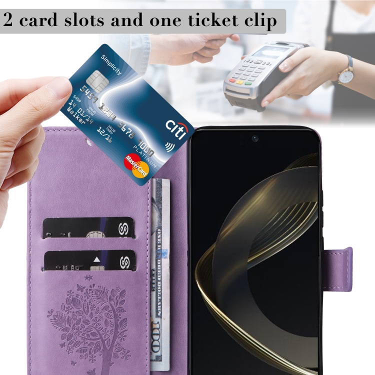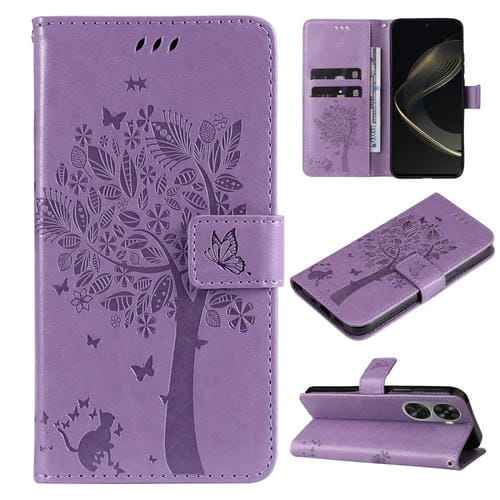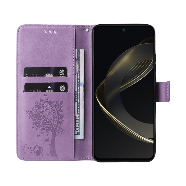 - 1x Funda para Huawei Nova 12 Se y Nova 11 Se de Cuero con Tapa y Patrón en Relieve de Árbol y Gato (Púrpura Claro)