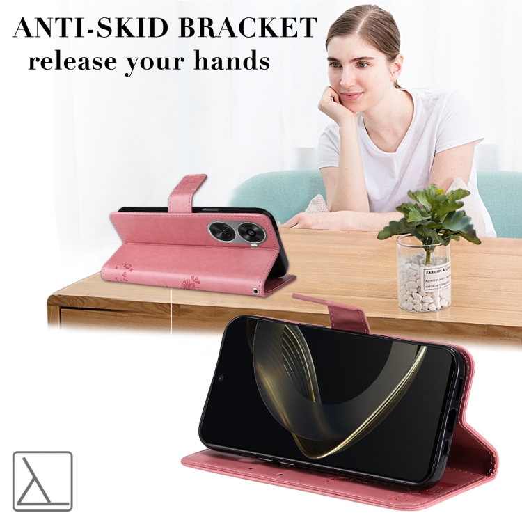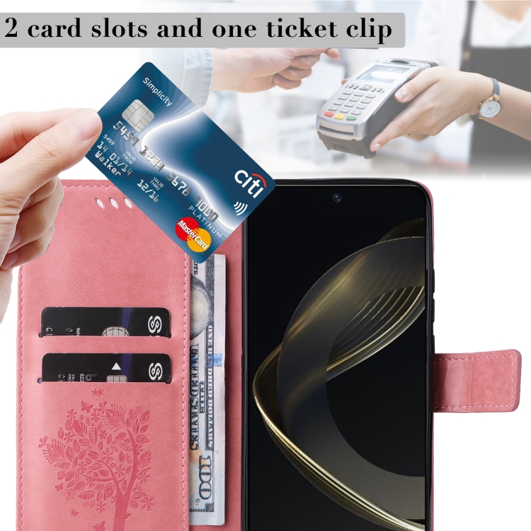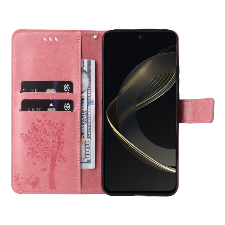 - 1x Funda para Huawei Nova 12 Se y Nova 11 Se de Cuero con Tapa y Patrón en Relieve de Árbol y Gato (Rosa)