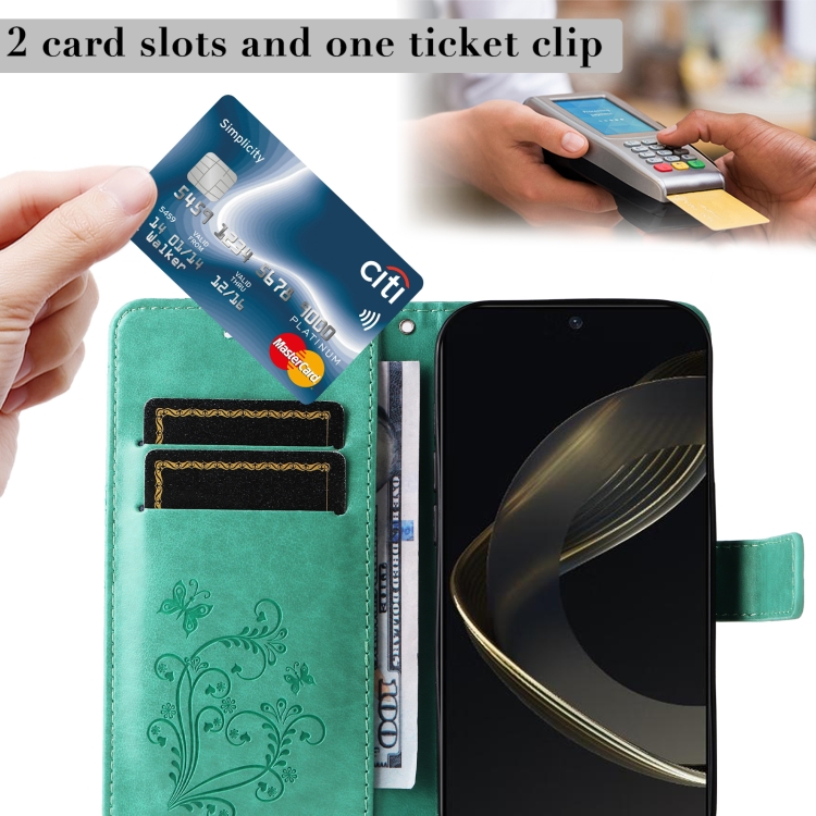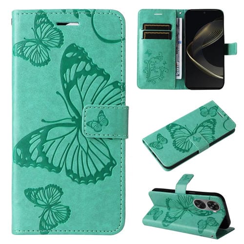 - 1x Funda para Huawei Nova 12 Se y Nova 11 Se de Cuero con Tapa y patrón mariposa 3D (Verde)