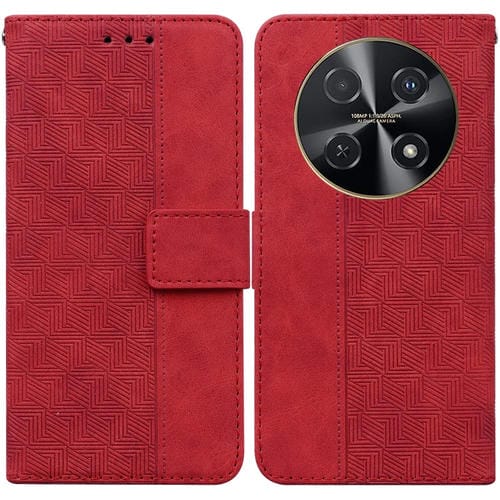 Funda de Cuero Huawei Nova 12I 4G con Relieve Geométrico Global (Rojo)