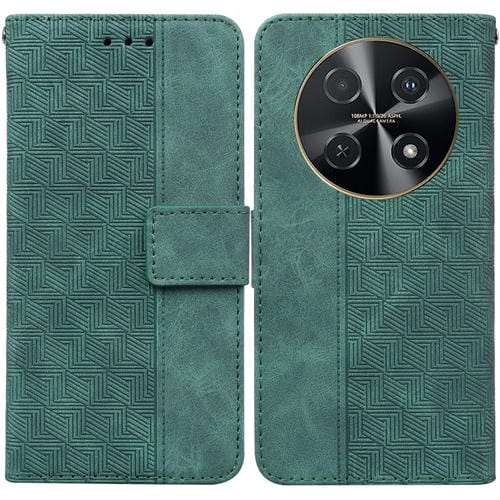 Funda de Cuero para Huawei Nova 12I 4G con Relieve Geométrico Global (Verde)