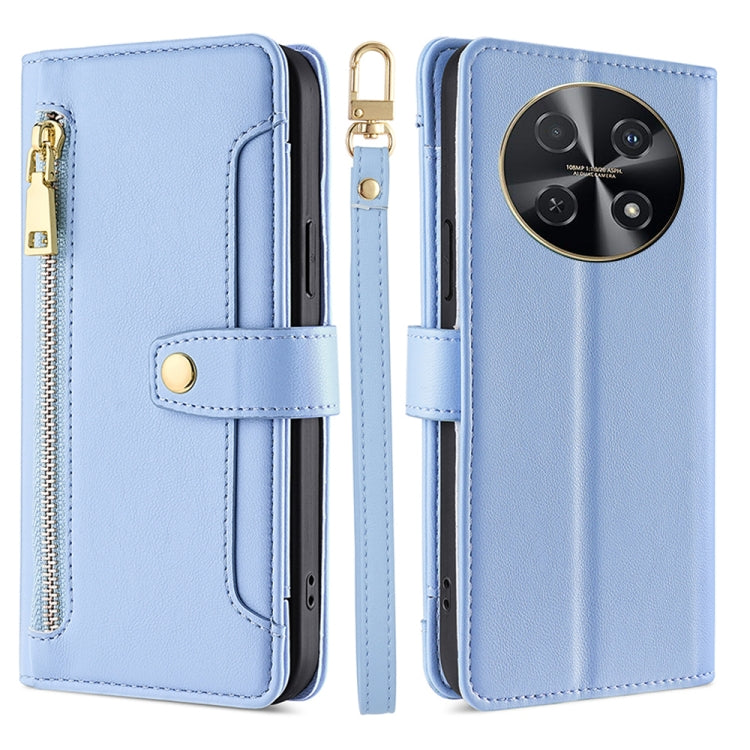 Funda de Cuero para Huawei Nova 12I 4G con Billetera, Cremallera y Textura de Oveja (Azul)