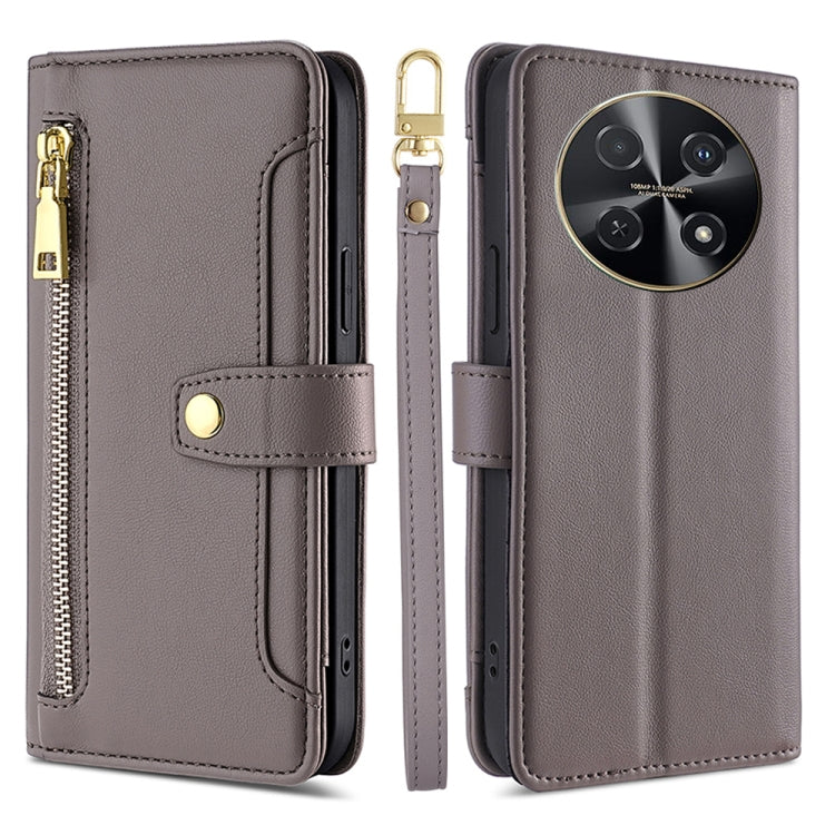 Funda de Cuero Huawei Nova 12I 4G con Billetera, Cremallera y Textura de Oveja (Gris)