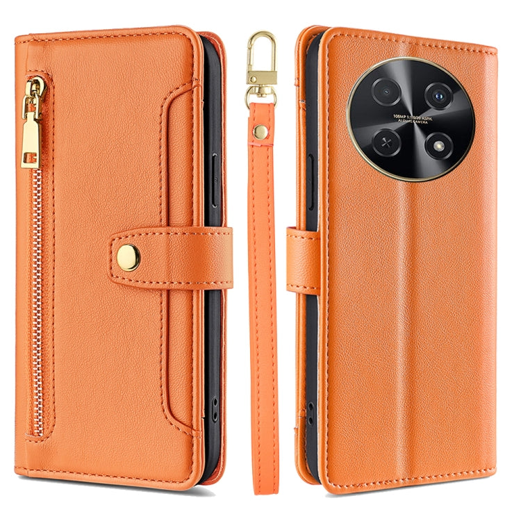 Funda de Cuero para Huawei Nova 12I 4G con Billetera y Cremallera Cuerpo Cruzado (Naranja)