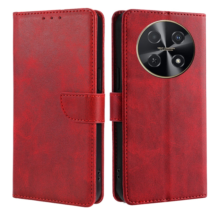 Funda para Huawei Nova 12I 4G de Cuero con Tapa, Hebilla y Textura de Becerro (Rojo)