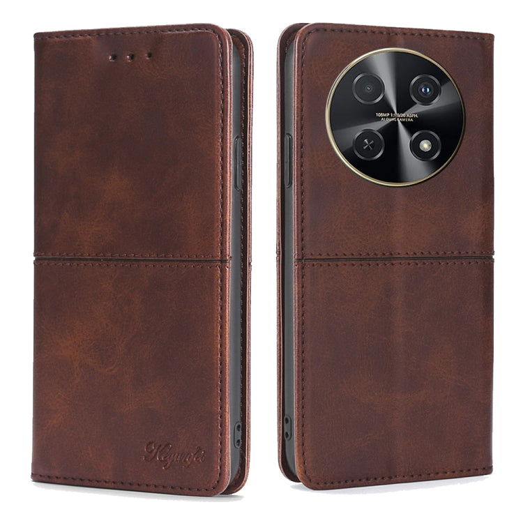 Funda para Huawei Nova 12I 4G de Cuero Magnético con Textura de Vaca (Marrón Oscuro)