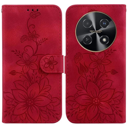 Funda de Cuero En Relieve para Huawei Nova 12I 4G Global Lily (Rojo)