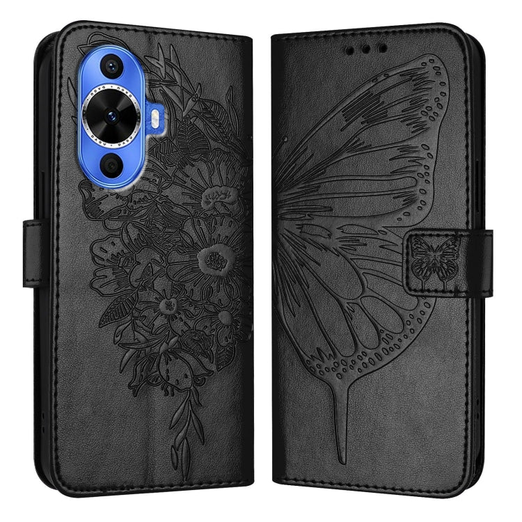 Funda de Cuero para Huawei Nova 12S 4G con Mariposa en Relieve (Negro)