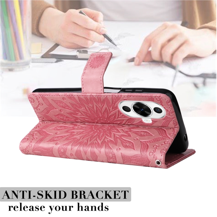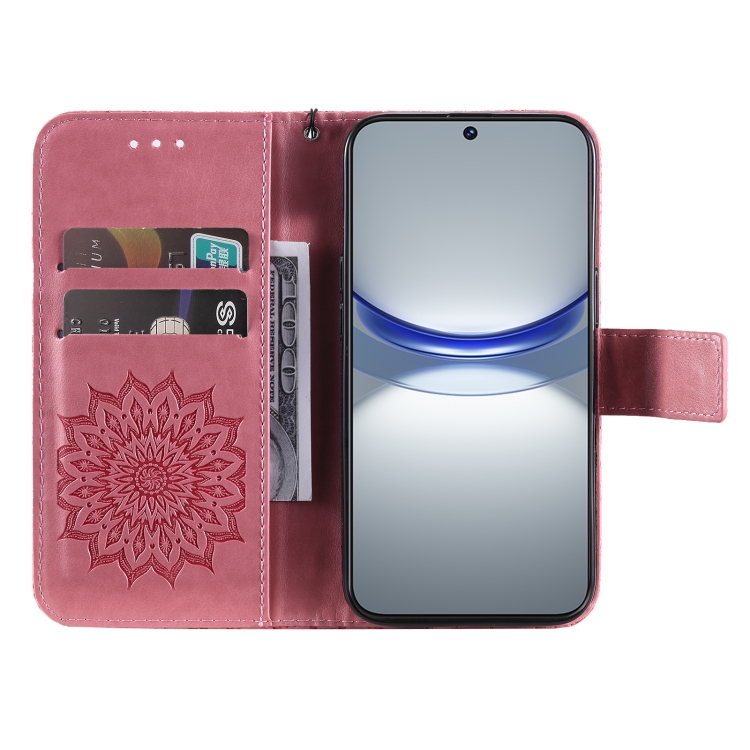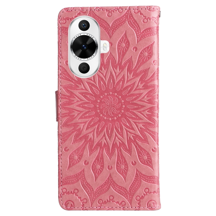 - 1x Funda de Cuero con Tapa para Huawei Nova 12S con Patrón de Girasol en Relieve (Rosa)