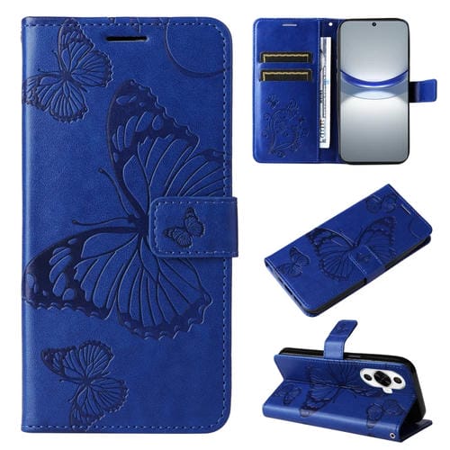 Funda de Cuero con Tapa para Huawei Nova 12S con Patrón Mariposa 3D (Azul)