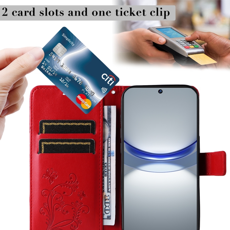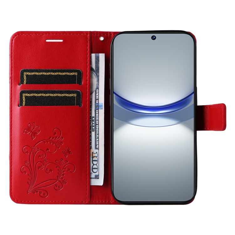 Funda de Cuero con Tapa para Huawei Nova 12S con Patrón Mariposa 3D (Rojo)