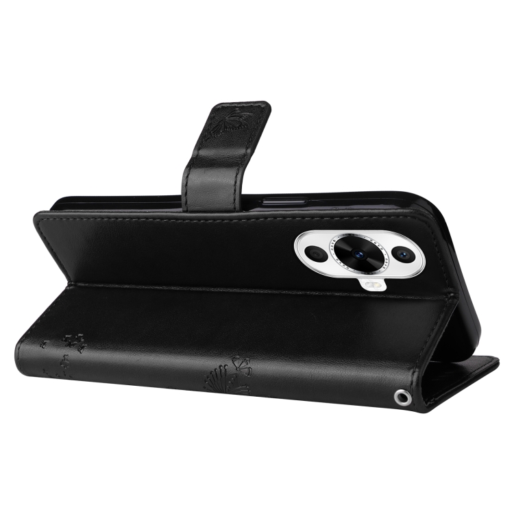 • 1x Funda para Huawei Nova 12S de Cuero con Tapa y Patrón en Relieve Árbol y Gato (Negro)