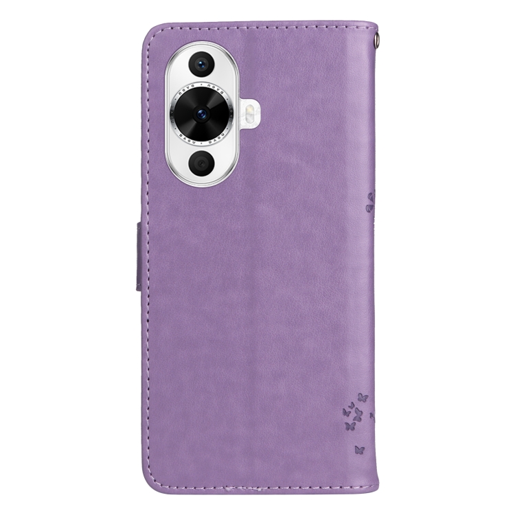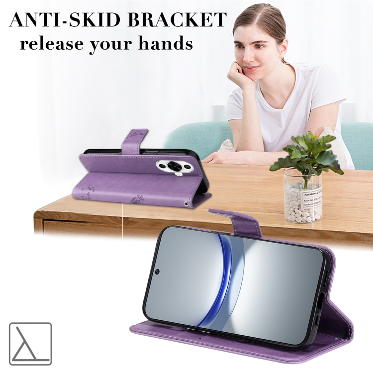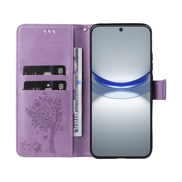 Funda para Huawei Nova 12S de Cuero con Tapa y Patrón en Relieve Árbol y Gato (Púrpura Claro)