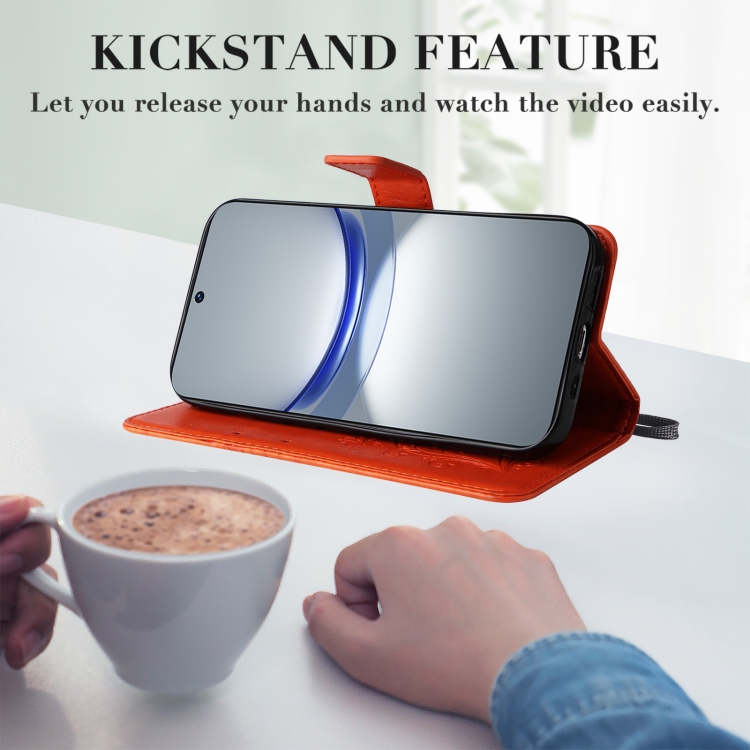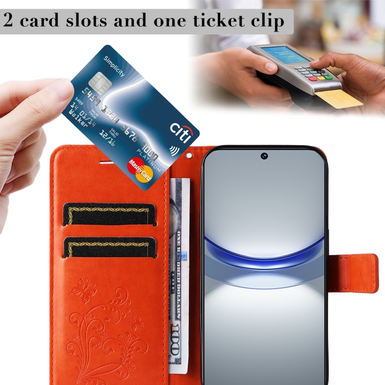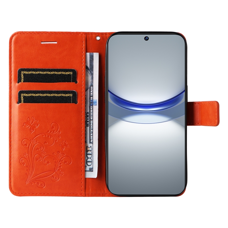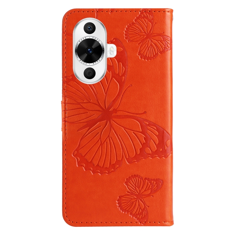 Funda para Huawei Nova 12S de Cuero con Tapa y Patrón en Relieve Mariposa 3D (Naranja)