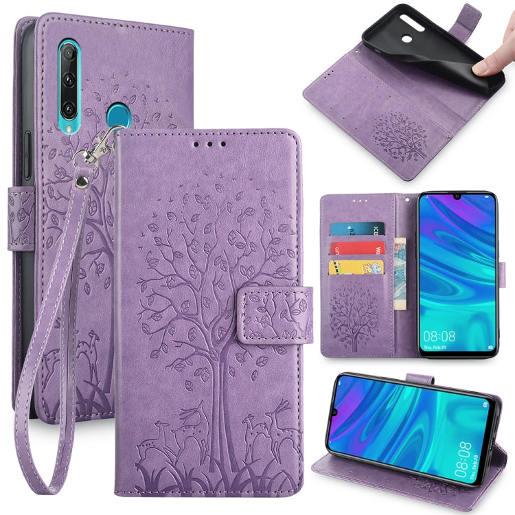 Funda de Cuero Huawei P Smart+ 2019 Enjoy 9S con Relieve Árbol y Ciervo (Púrpura)