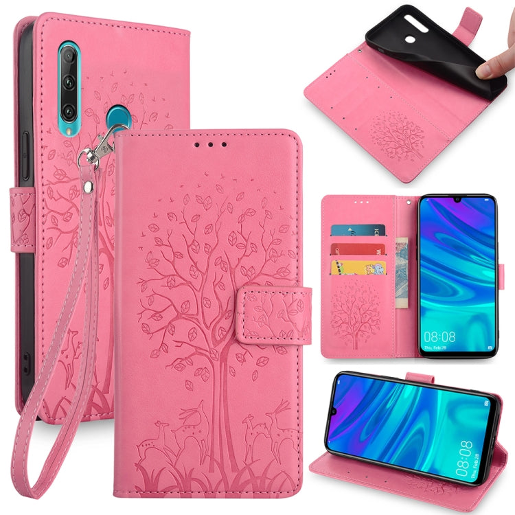 Funda de Cuero Huawei P Smart + 2019 Enjoy 9S con Relieve de Árbol y Ciervo (Rosa)