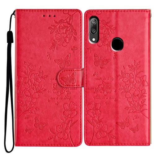 Funda para Huawei P Smart Z de Cuero con Relieve de Flor y Mariposa (Rojo)