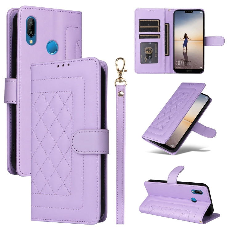 Funda de Teléfono Huawei P20 Lite con Tapa de Cuero Diamond Lattice (Púrpura Claro)