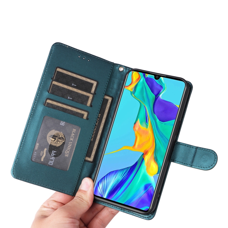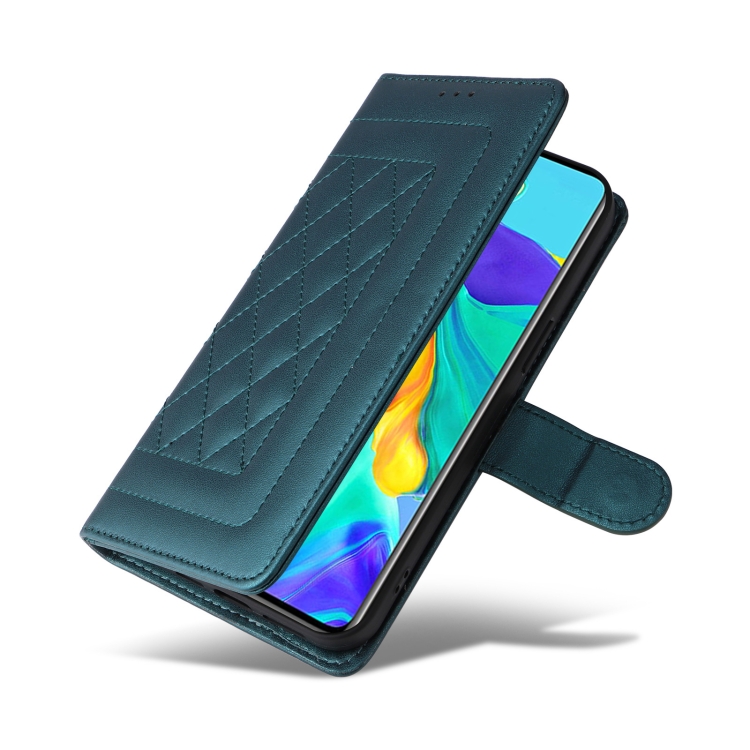 Funda de Teléfono Huawei P30 con Tapa de Cuero Diamond Lattice (Verde)