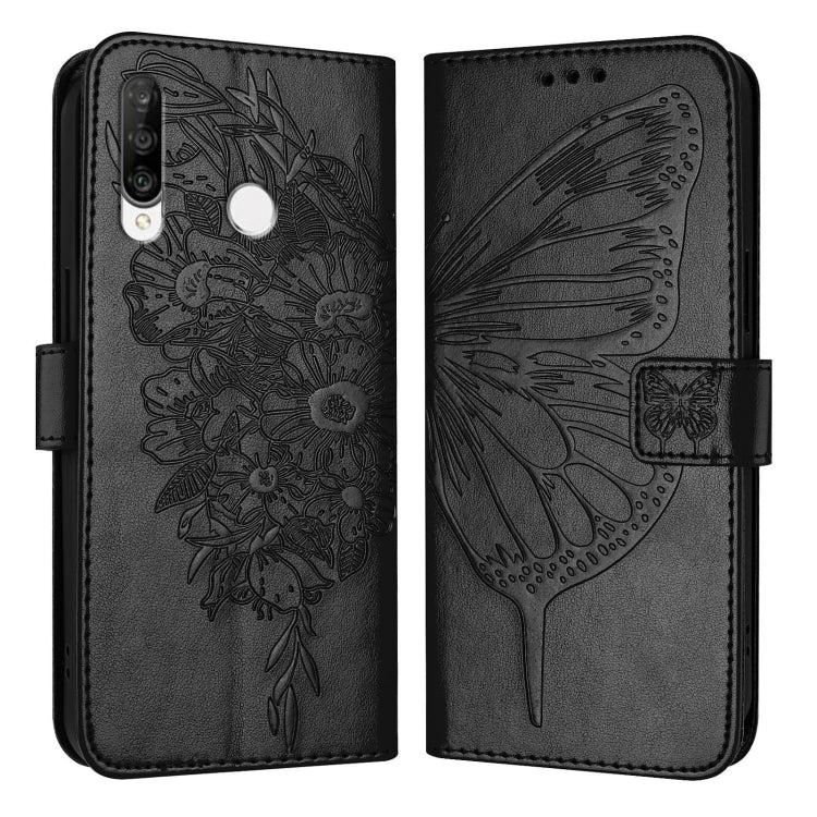 Funda de Cuero para Huawei P30 Lite Nova 4E con Mariposa en Relieve (Negro)