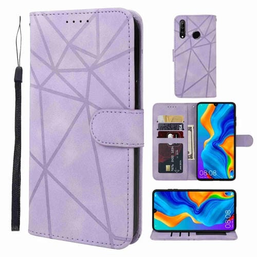 Funda de Cuero para Huawei P30 Lite con Líneas Geométricas (Púrpura)