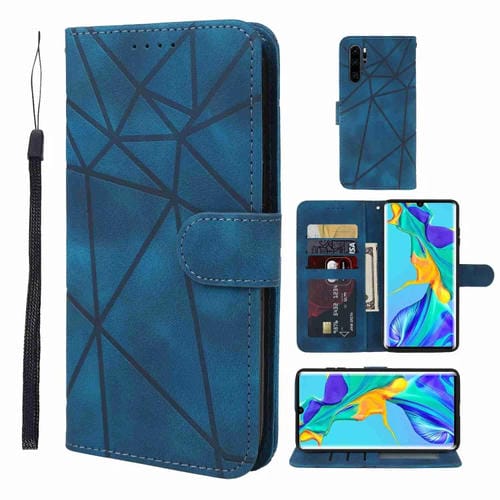 Funda de Cuero para Huawei P30 Pro Skin Feel con Líneas Geométricas (Azul)