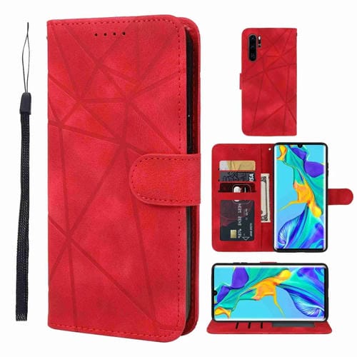 - 1x Funda de Cuero para Huawei P30 Pro con Líneas Geométricas (Rojo)