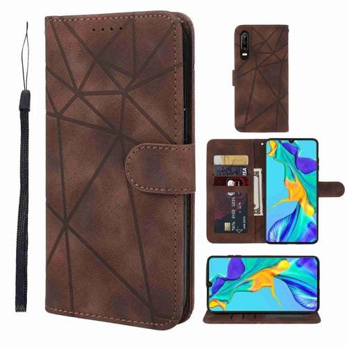 Funda de Cuero para Huawei P30 con Líneas Geométricas (Marrón) Skin Feel