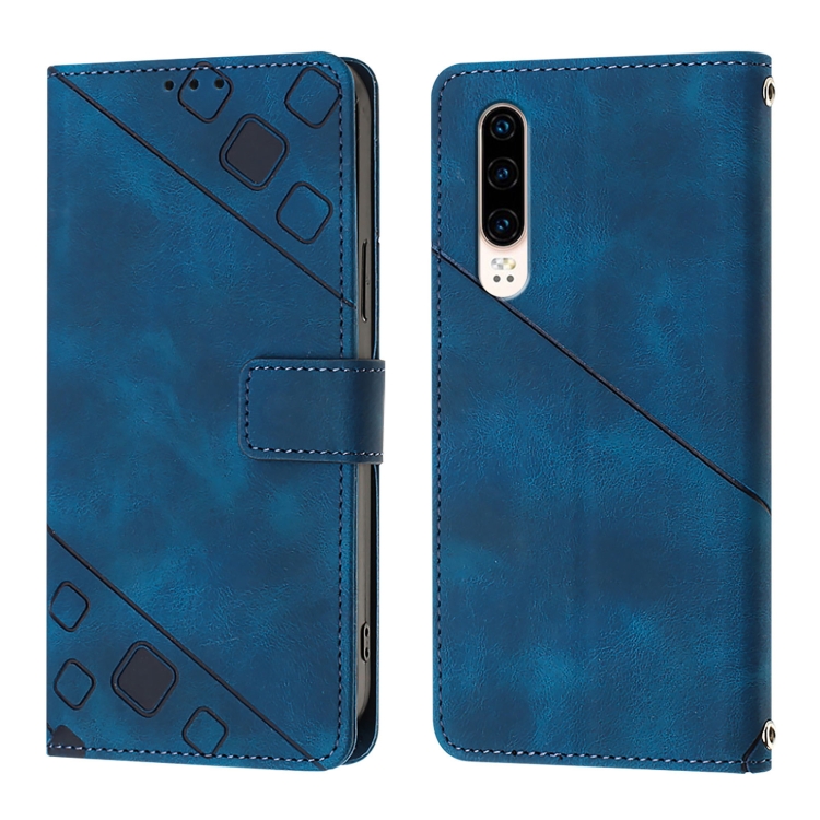 Funda de Cuero para Huawei P30 Skin Feel Teléfono En Relieve (Azul)