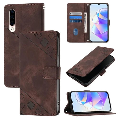 - 1x Funda de Cuero para Huawei P30 Skin Feel Teléfono En Relieve (Marrón)
