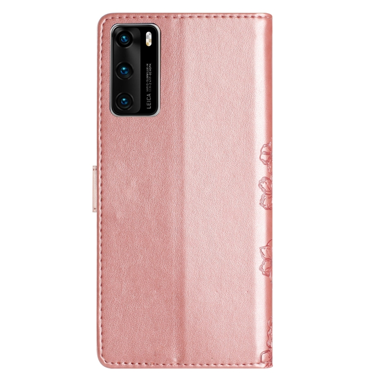 Funda para Huawei P40 Cherry Blossom Butterfly Skin Feel de PU en Relieve (Oro Rosa)