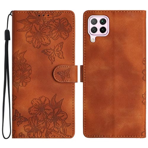 - 1x Funda para Huawei P40 Lite Cherry Blossom Butterfly Skin Feel en Marrón