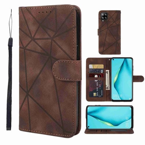 - 1x Funda de Cuero para Huawei P40 Lite con Líneas Geométricas (Marrón)