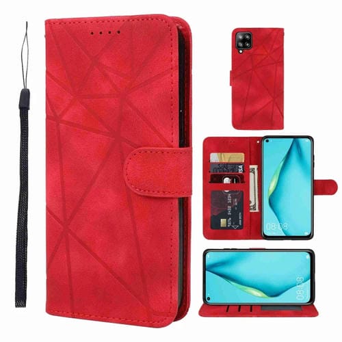 - 1x Funda de Cuero para Huawei P40 Lite Skin Feel con Líneas Geométricas (Rojo)