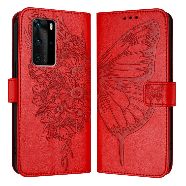 Funda de Cuero para Huawei P40 Pro con Mariposa en Relieve (Rojo)