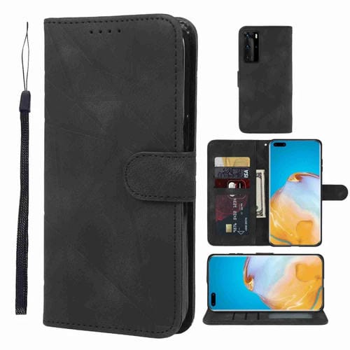 - 1x Funda de Cuero para Huawei P40 Pro Skin Feel con Líneas Geométricas (Negro)