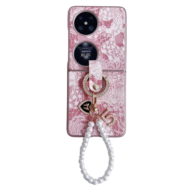 Funda para Huawei P50 Cobertura Total Bordado con Cadena de Cuentas (Rosa)