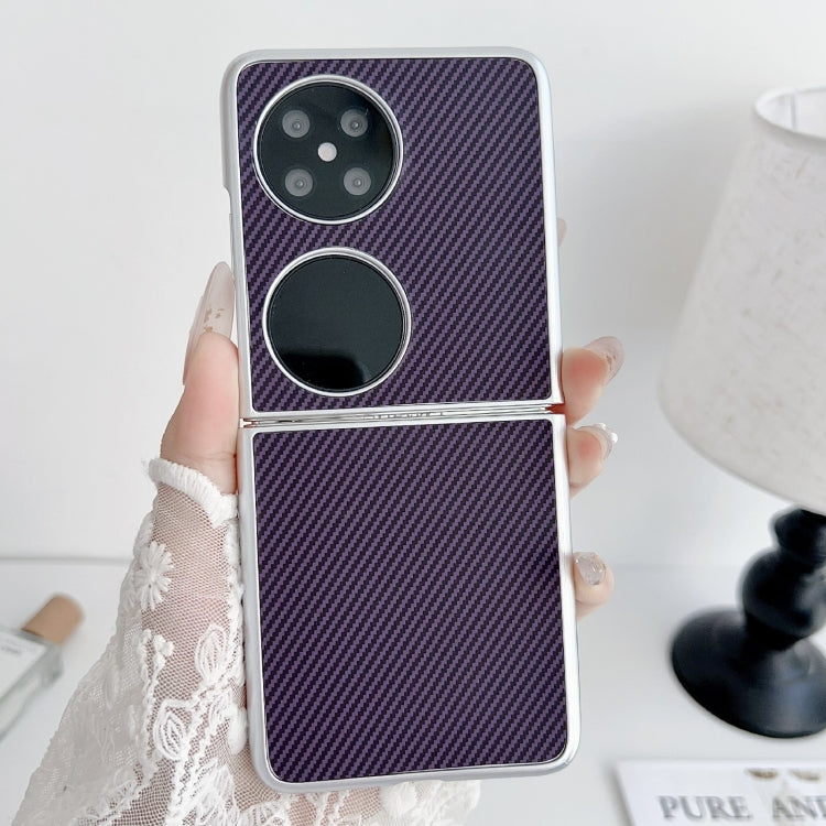 Funda para Huawei P50 Pocket Kevlar Ultrafina Prueba de Golpes Fibra de Carbono (Púrpura)
